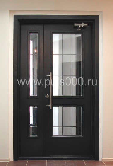 Выбрать входные двери в офис менее сложно, чем в квартиру, или дом. Как правило, это строгие однопольные двери без декоративных накладок, ковки и других украшений. Полотно двери монтируется на металлическом каркасе из профильной трубы. Створка внутри заполняется утеплителем — минеральной ватой, пенополистиролом или пенополиуретаном.